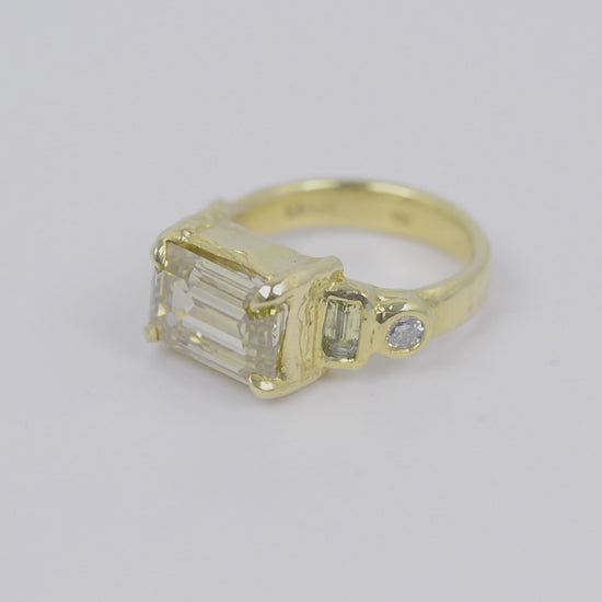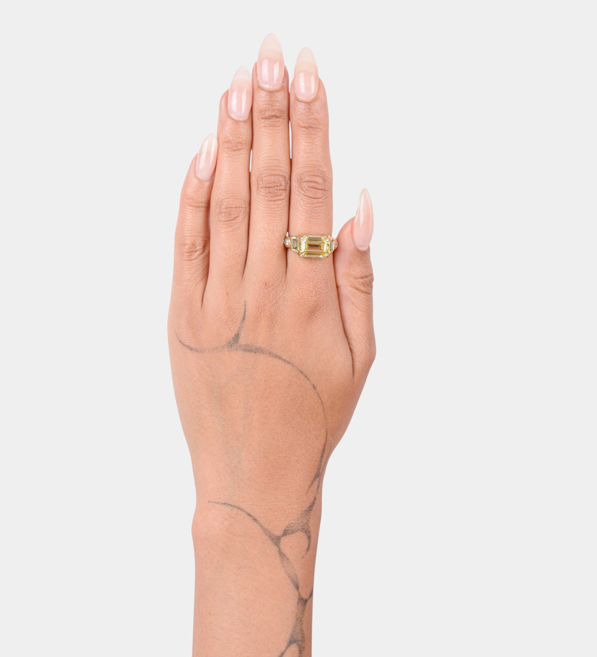 ~ a 5.04 carat emerald cut, fancy yellow, SI 1 clarity, lab grown diamond