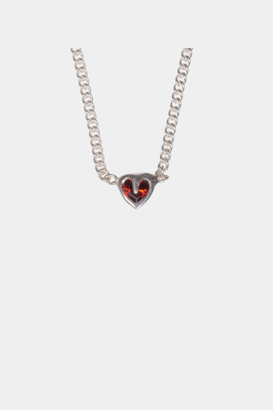 The Chained Heart Necklace~ made with a red CZ heart and a hand made taped chain. Available in silver and 18K yellow gold vermeil.