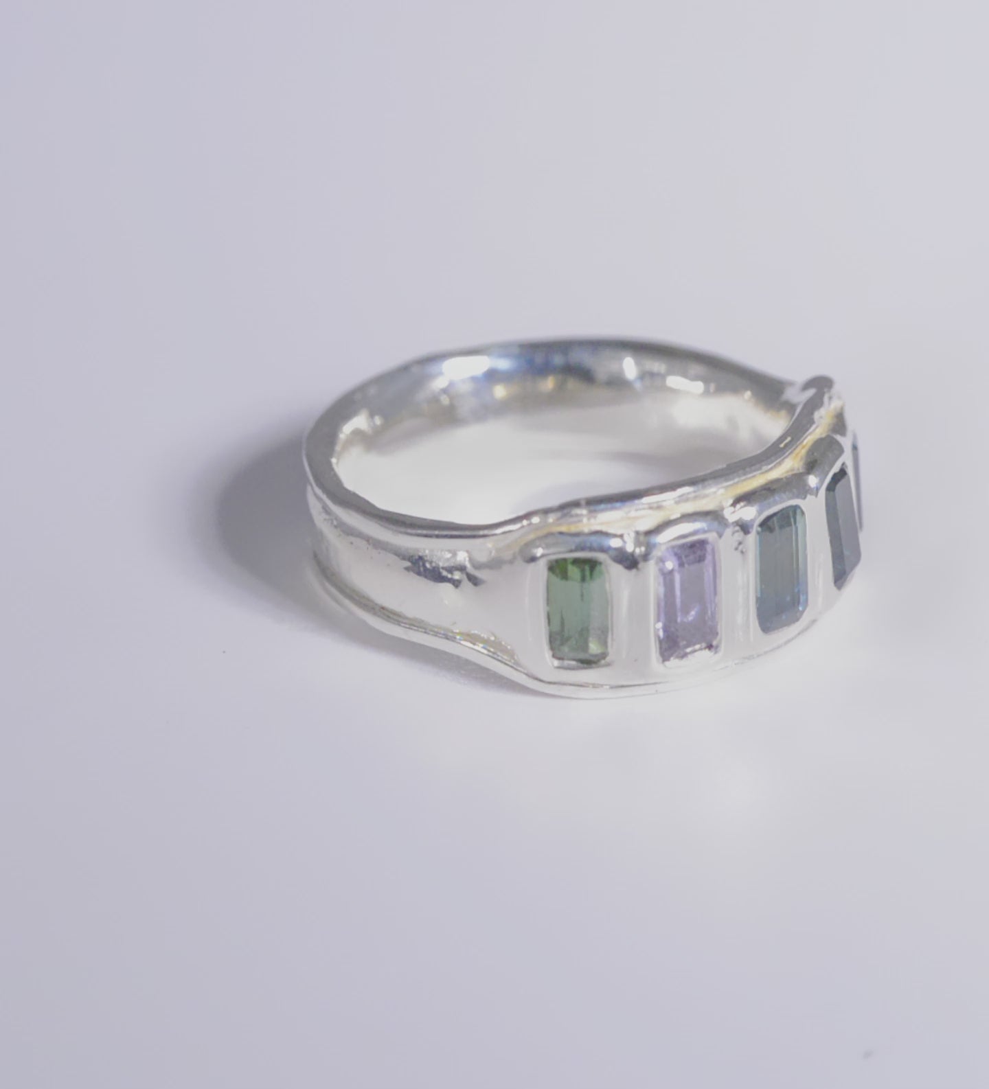 ~ five 4.5x2.5mm emerald cut mixed colour sapphires