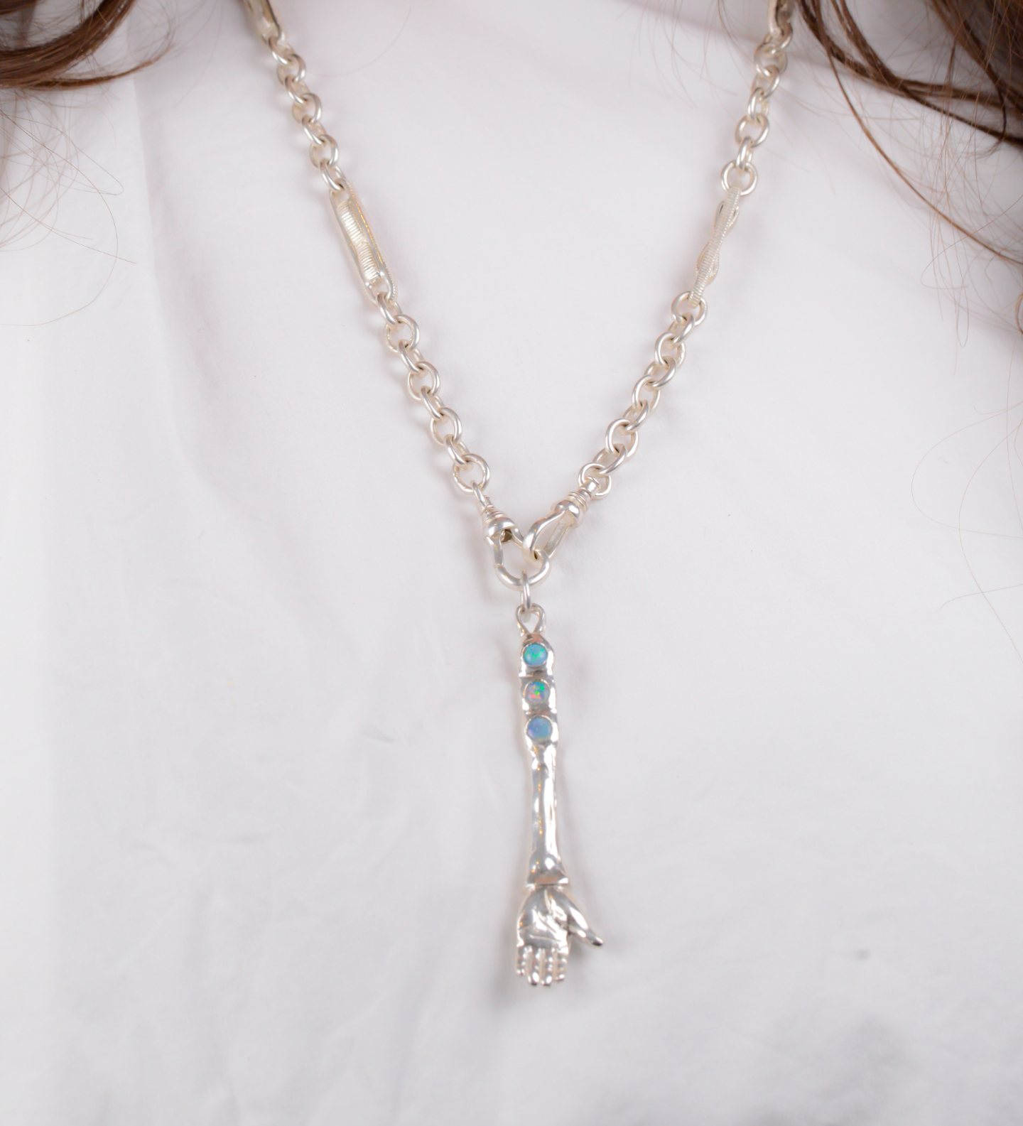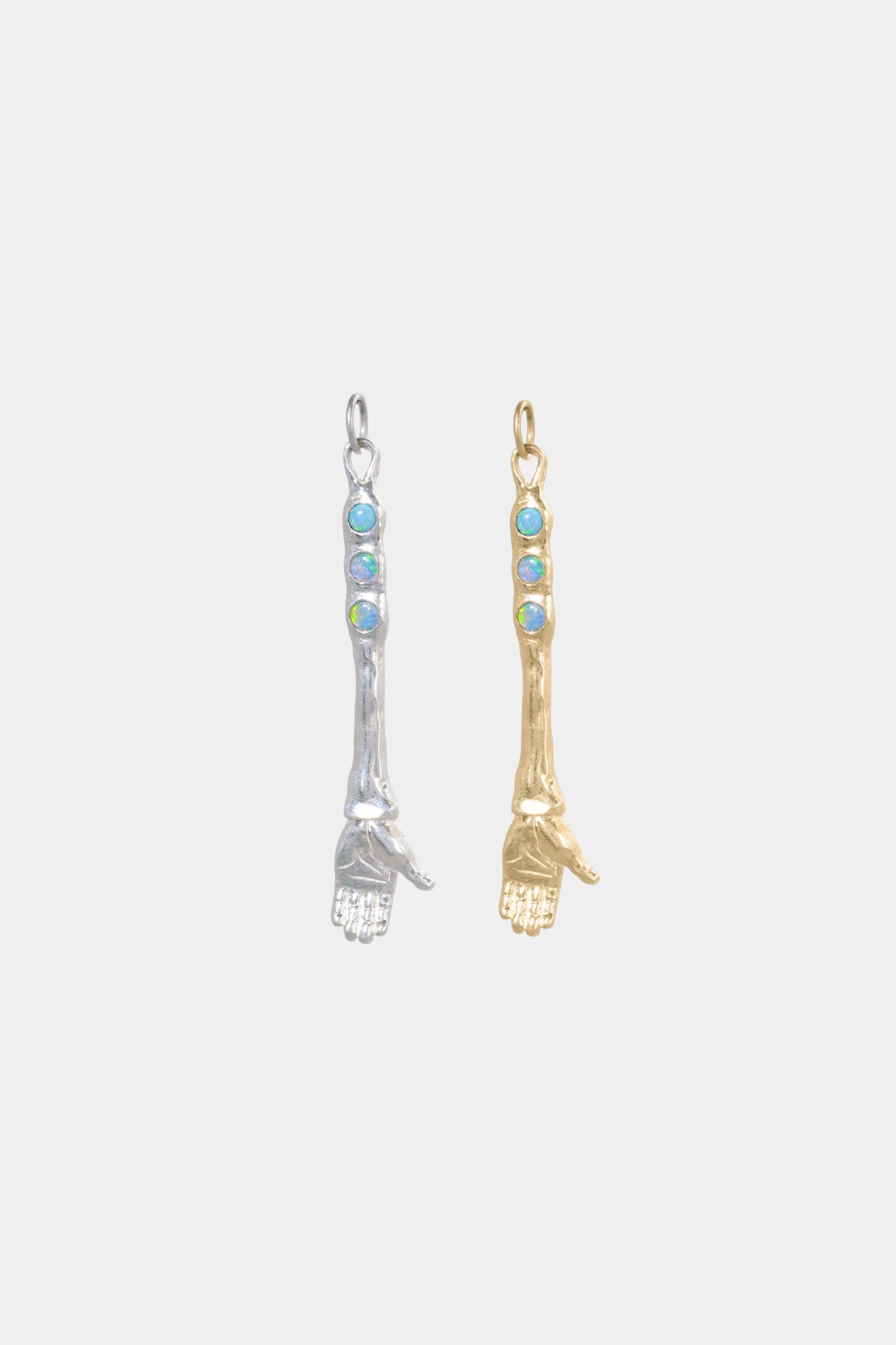 The Please, Sir Spoon is available in solid sterling silver or an 18k yellow gold vermeil and set with three 3mm round natural solid Australian opals.