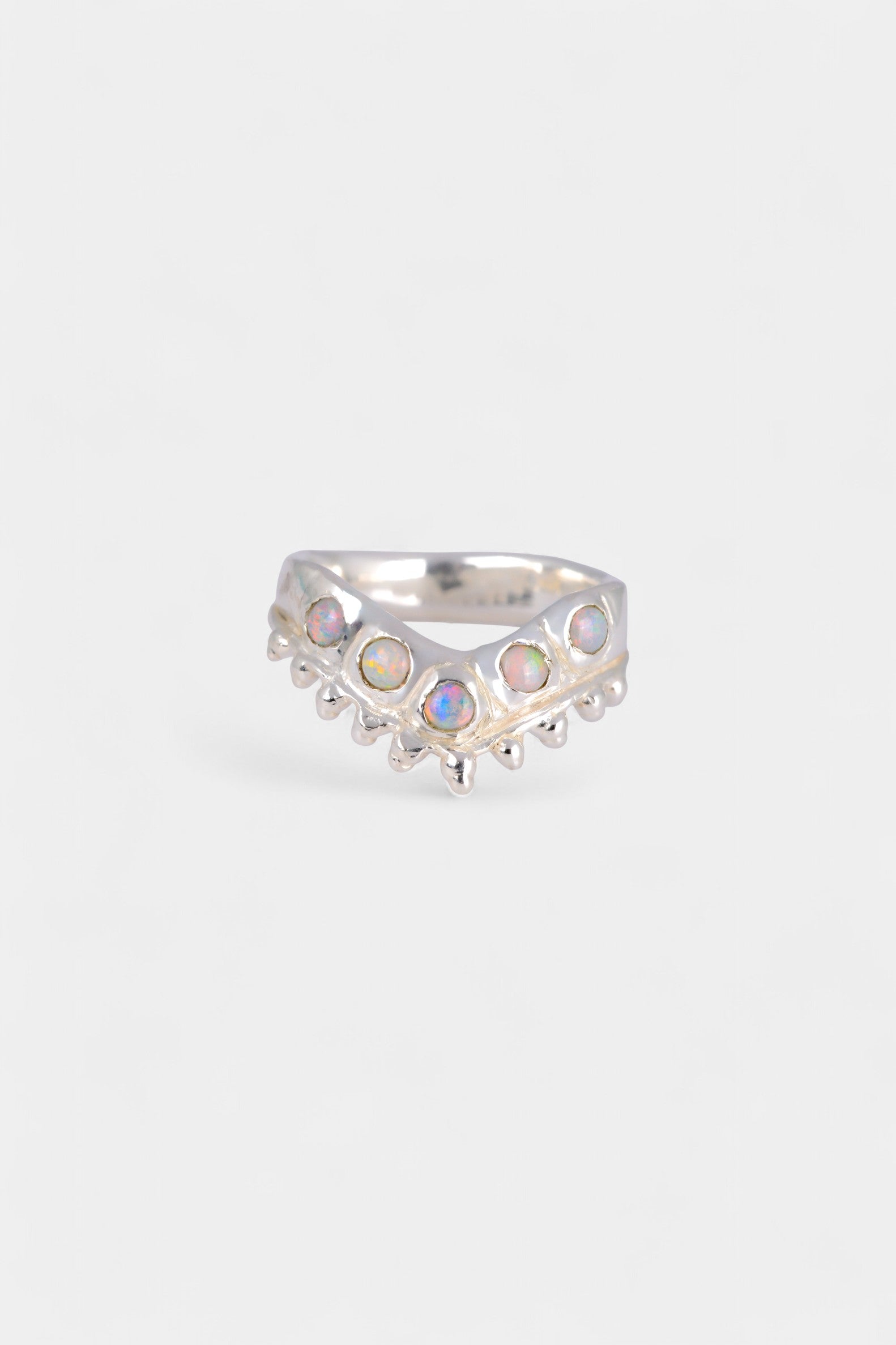 The Queen Of The Desert Stacker Ring is available in your choice of sterling silver, solid 9k gold or solid 18k gold and set with five 3mm round solid Australian opals.