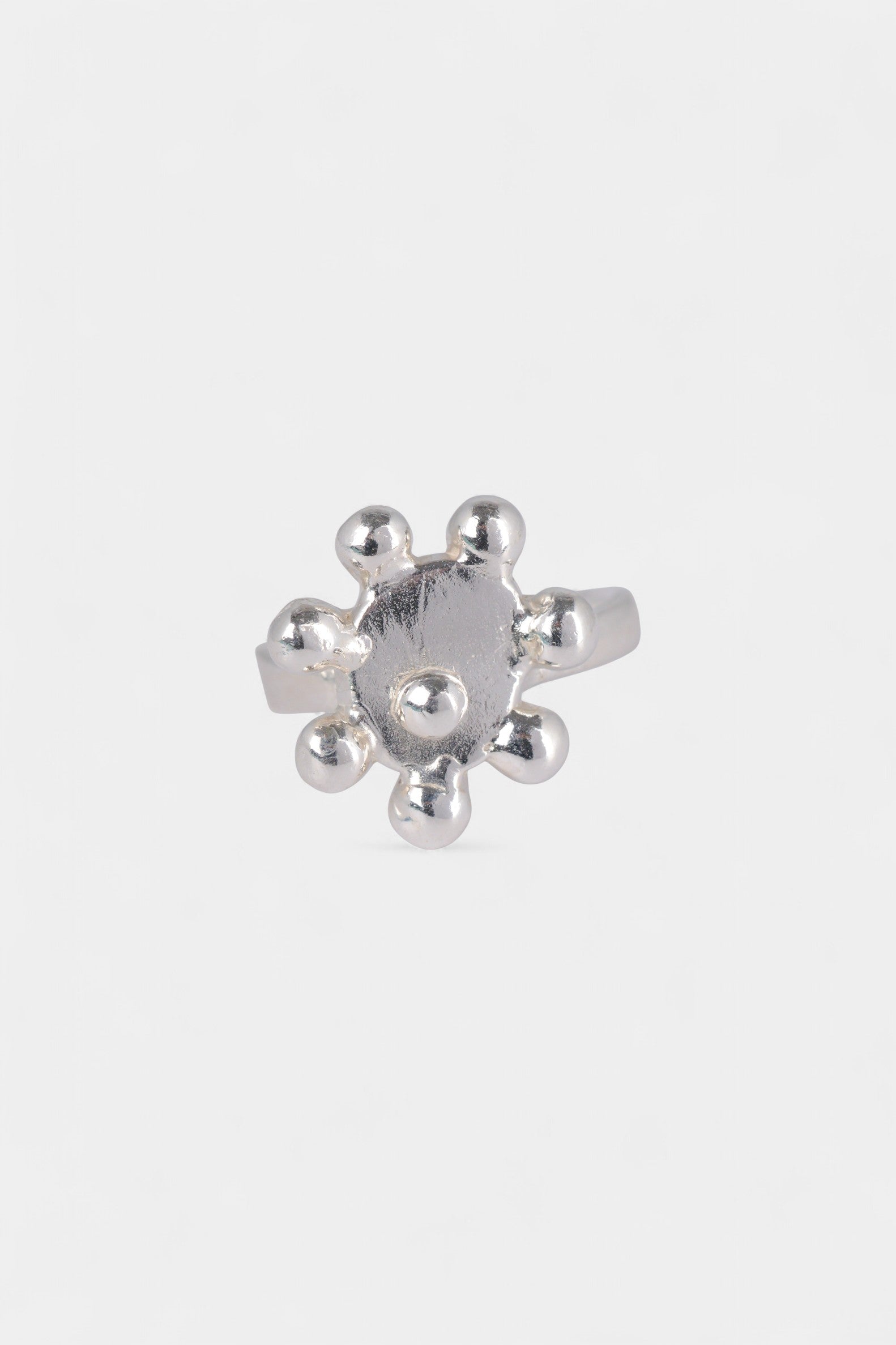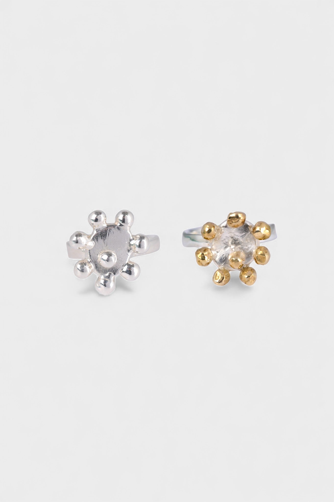 The Roly Poly Ring is available in your choice of plain sterling silver, or sterling silver with brass blobs.