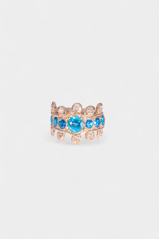 For the luna creatures, gold brass moon on a solid sterling silver ring.