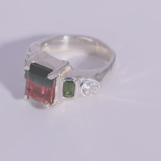 ~ A 12x10mm, emerald cut, natural watermelon tourmaline