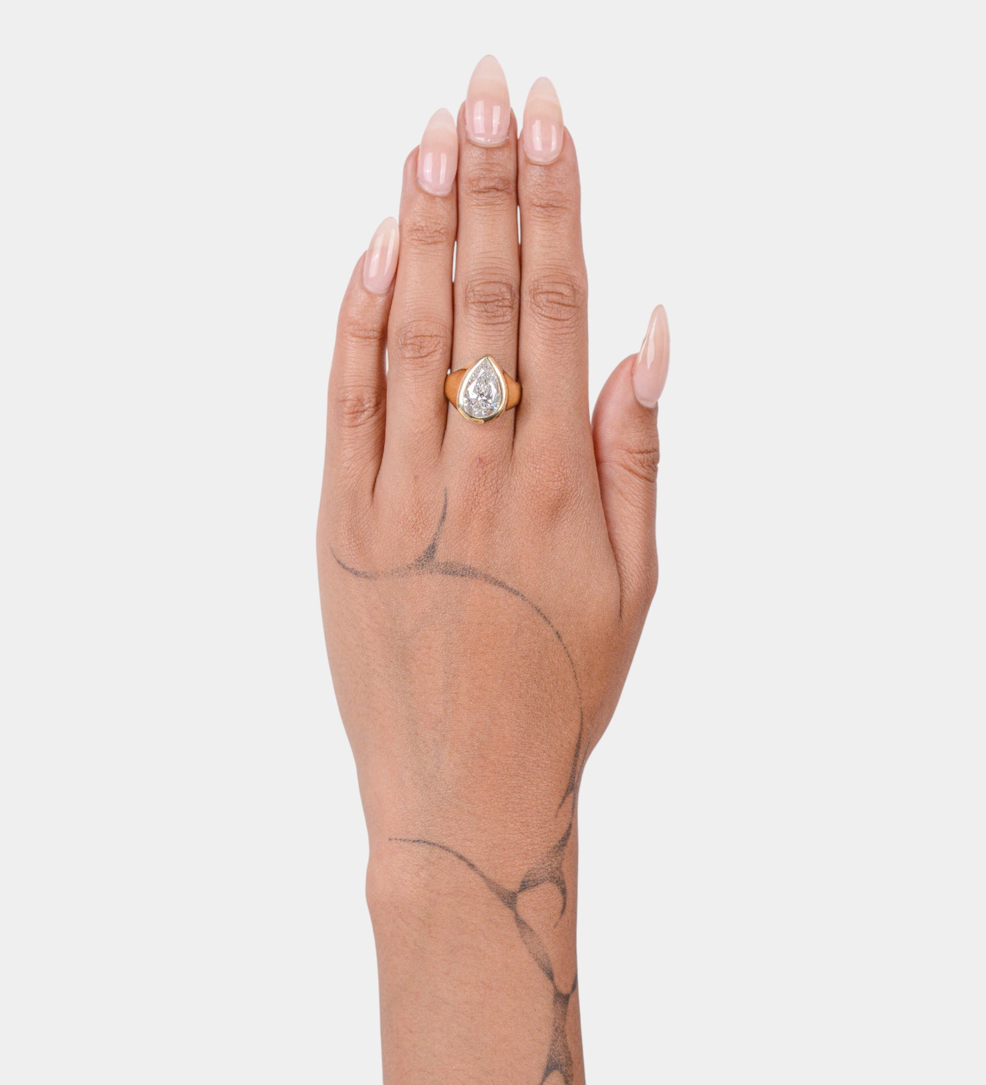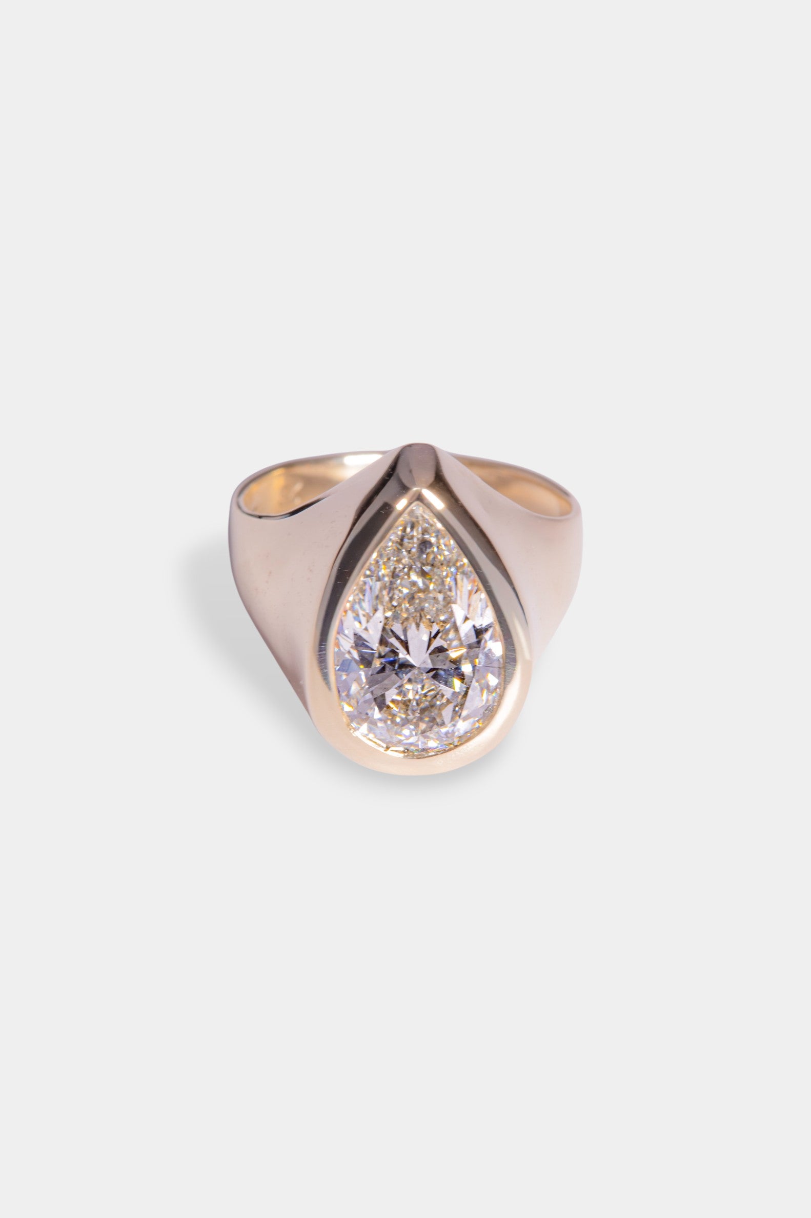 This Savage Diamonds is set in solid 9 karat yellow gold with an IGI certified, 4.71 carat pear brilliant cut, G colour, SI 2 clarity, lab grown diamond.
